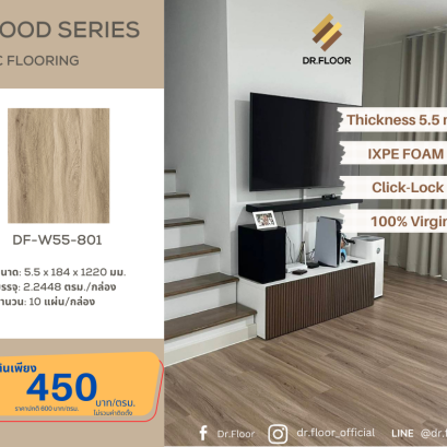 DR.FLOOR พื้นกระเบื้องยางลายไม้ SPC WOOD Series 5.5 mm. (Click-Lock) DF-W55-801