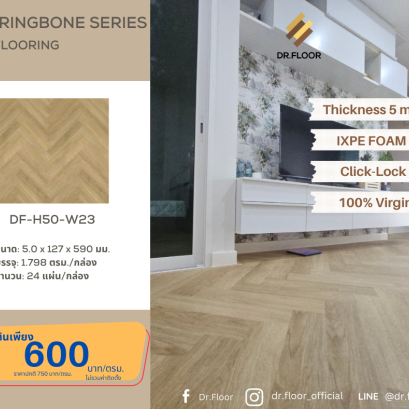 DR.FLOOR พื้นกระเบื้องยางลายก้างปลา SPC Herringbone Series 5.0 mm. (Click-Lock) DF-H50-W23