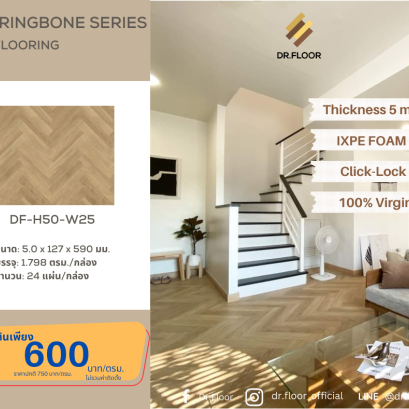 DR.FLOOR พื้นกระเบื้องยางลายก้างปลา SPC Herringbone Series 5.0 mm. (Click-Lock) DF-H50-W25