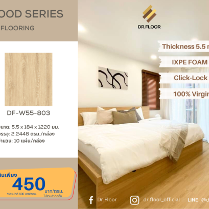 DR.FLOOR พื้นกระเบื้องยางลายไม้ SPC WOOD Series 5.5 mm. (Click-Lock) DF-W55-803