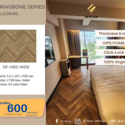 DR.FLOOR พื้นกระเบื้องยางลายก้างปลา SPC Herringbone Series 5.0 mm. (Click-Lock) DF-H50-W26