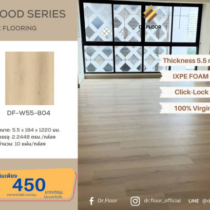 DR.FLOOR พื้นกระเบื้องยางลายไม้ SPC WOOD Series 5.5 mm. (Click-Lock) DF-W55-804