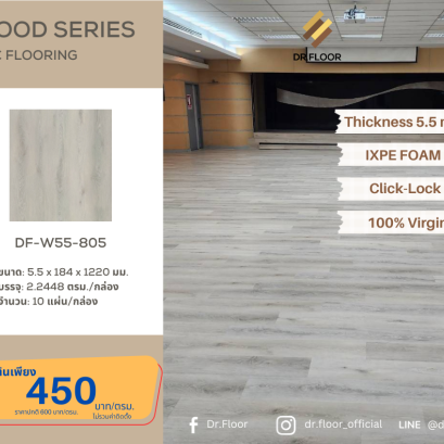 DR.FLOOR พื้นกระเบื้องยางลายไม้ SPC WOOD Series 5.5 mm. (Click-Lock) DF-W55-805