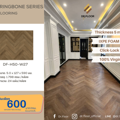 DR.FLOOR พื้นกระเบื้องยางลายก้างปลา SPC Herringbone Series 5.0 mm. (Click-Lock) DF-H50-W27