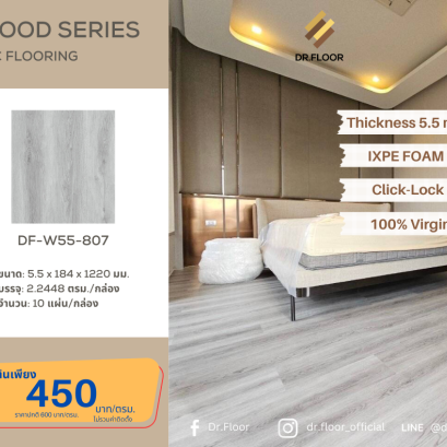 DR.FLOOR พื้นกระเบื้องยางลายไม้ SPC WOOD Series 5.5 mm. (Click-Lock) DF-W55-807