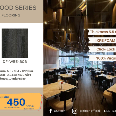 DR.FLOOR พื้นกระเบื้องยางลายไม้ SPC WOOD Series 5.5 mm. (Click-Lock) DF-W55-808