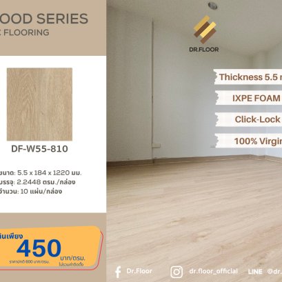 DR.FLOOR พื้นกระเบื้องยางลายไม้ SPC WOOD Series 5.5 mm. (Click-Lock) DF-W55-810