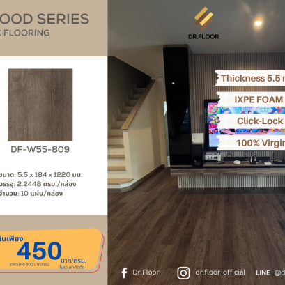 DR.FLOOR พื้นกระเบื้องยางลายไม้ SPC WOOD Series 5.5 mm. (Click-Lock) DF-W55-809